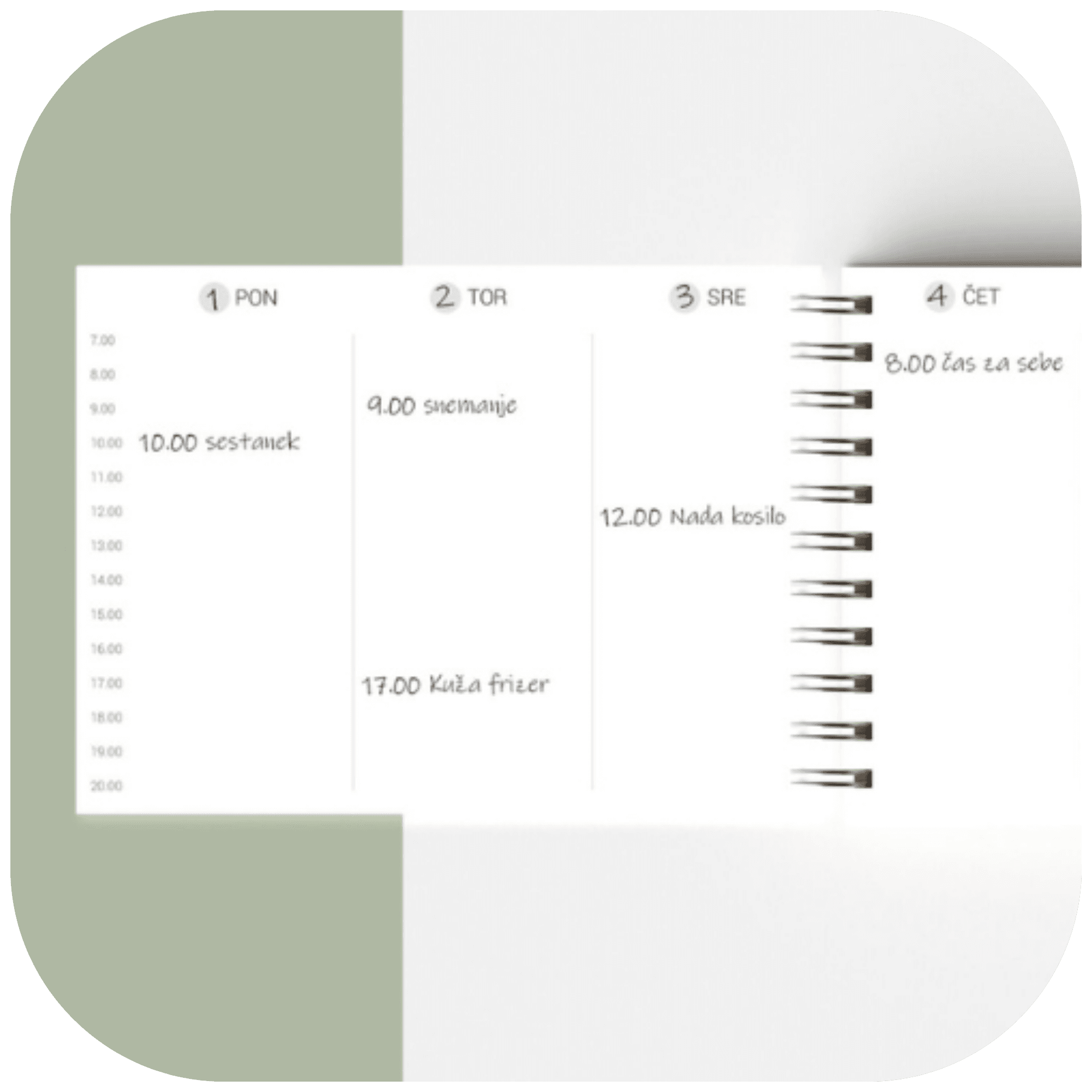 V planerju lahko najdeš:
