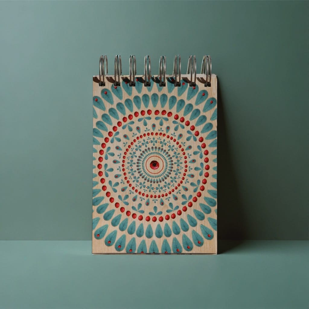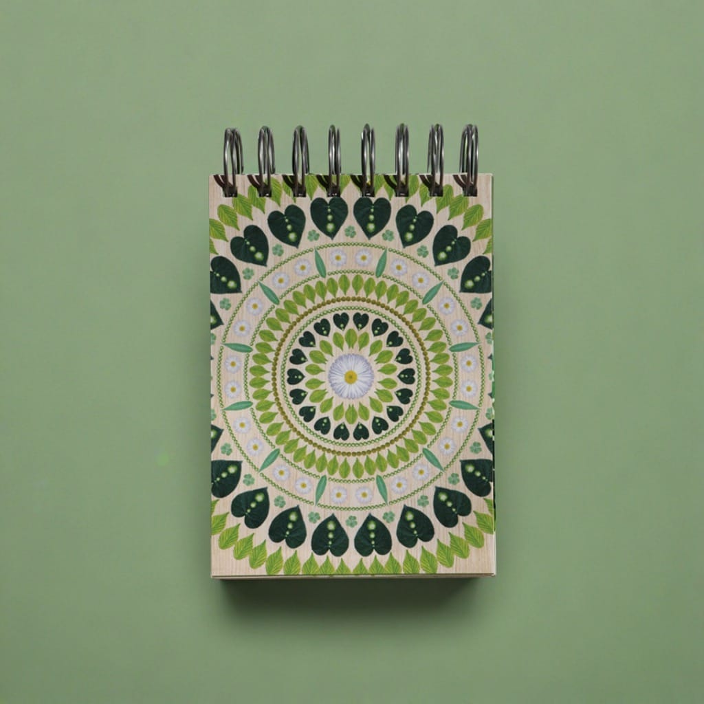 Mandala, ki krasi Rokovnik v ritmu narave, je simbol celovitosti, ravnovesja in naravnega toka življenja. Njene oblike in krožni vzorci te spominjajo, da se vse v naravi premika v ciklih, od diha, dneva, letnih časov, do tvojih notranjih ritmov. Vsak krog, linija in detajl mandale te povabi, da se ustaviš, zadihaš in začutiš, kako se tvoje življenje ne odvija linearno, temveč v mehkobnih, ponavljajočih se valovih, tako kot narava sama.